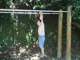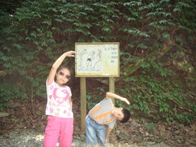 小朋友們走走停停,汗流夾背是一定的,但還有時間耍寶,體力應該還是負荷的了。